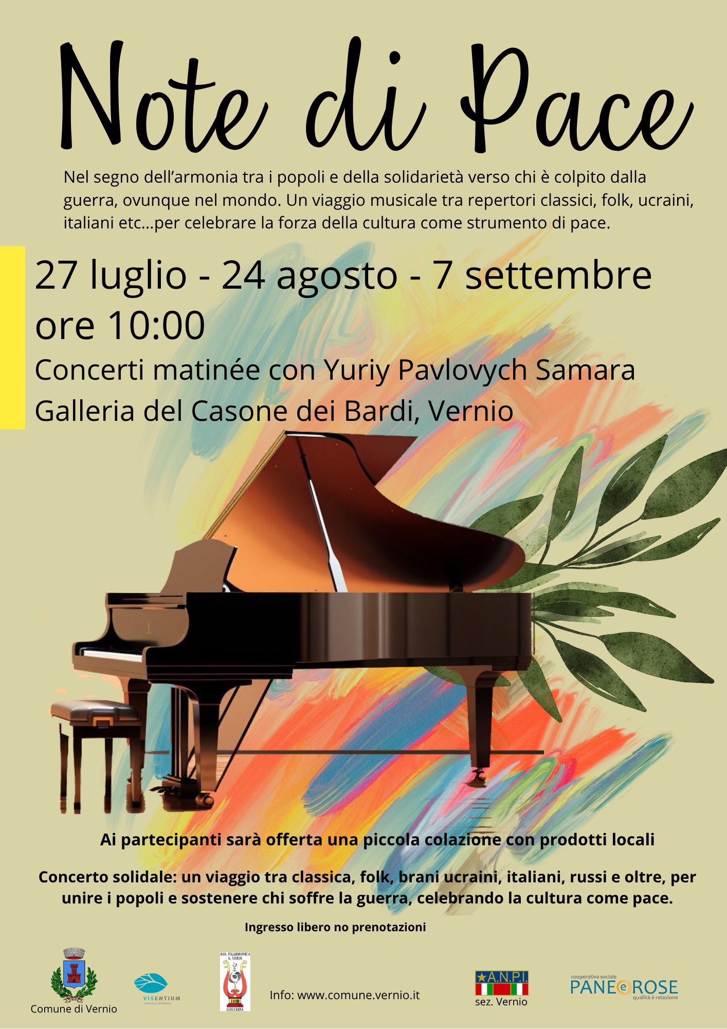 Adesso riallaccia la sua lunga relazione con il pianoforte e con il pubblico come protagonista di una serie di concerti matinée nella Galleria di Palazzo Bardi dal titolo “Note di pace”. Il primo appuntamento è fissato per domenica 27 luglio alle 10. Samara, grazie alla collaborazione della Filarmonica Verdi di Luicciana, si esibirà in un viaggio tra musica classica, folk, brani ucraini, italiani e russi per celebrare la forza della cultura come strumento di pace. Le altre date dei concerti, che vogliono essere un messaggio di solidarietà per chi è colpito dalla guerra ovunque nel mondo, sono domenica 24 agosto e domenica 7 settembre, in occasione del finissage della mostra dedicata a Leonetto Tintori e alla Scuola di Vainella. Ai partecipanti sarà offerta una piccola colazione con prodotti locali.